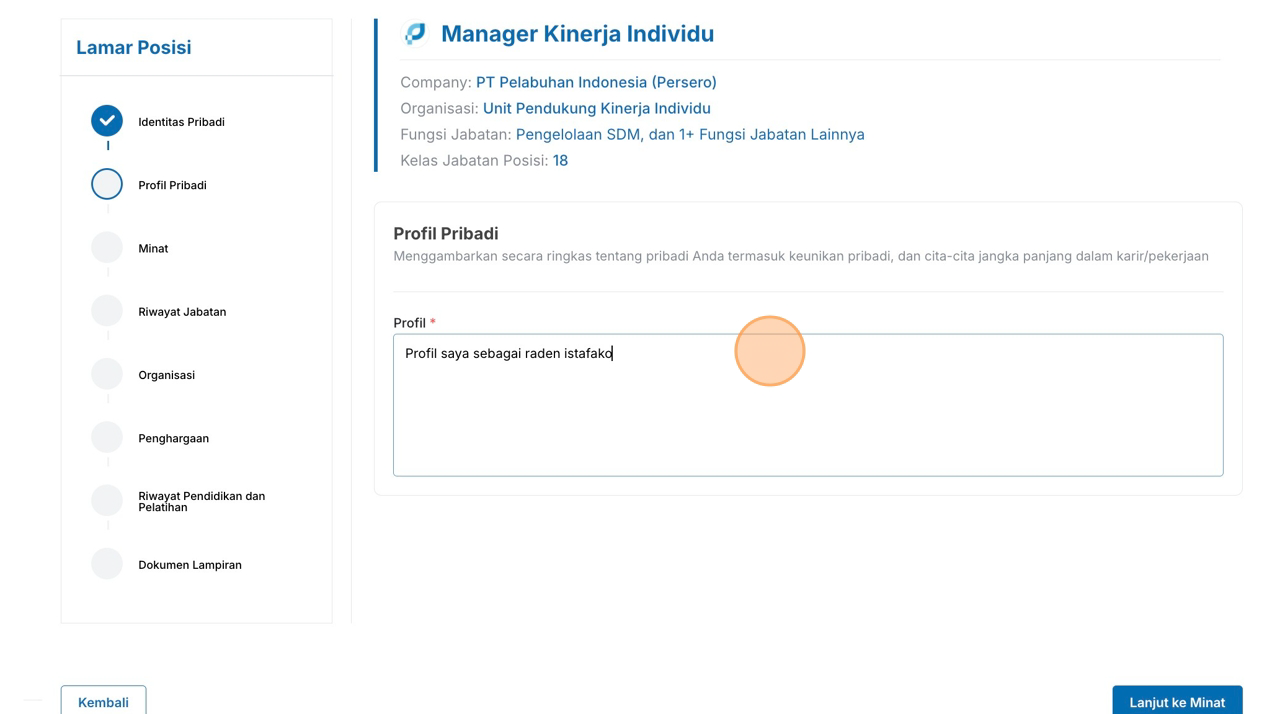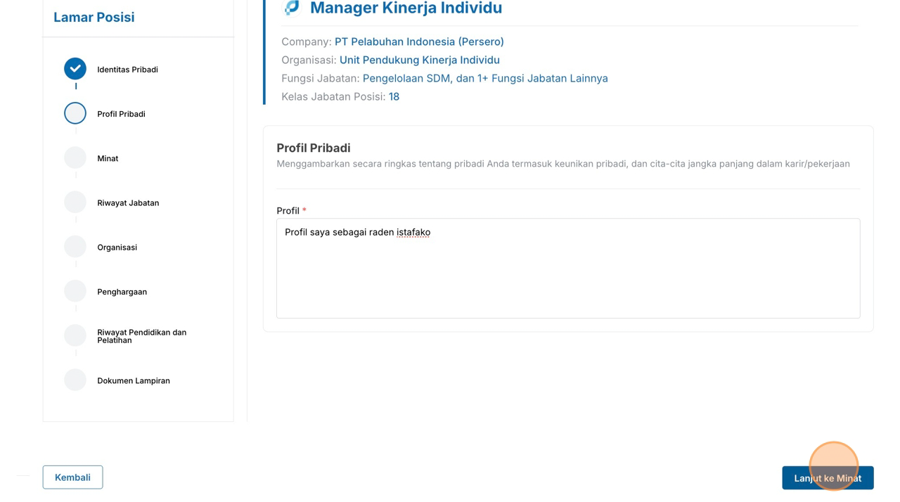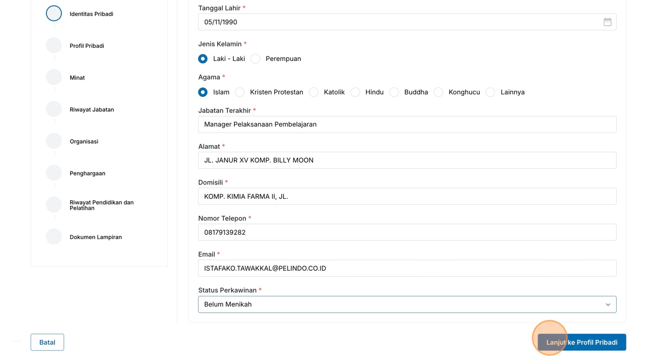 5. Jika sudah terisi semua, klik **Lanjut ke Profil Pribadi**